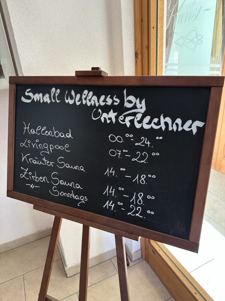 Am schönsten aber waren die herzlichen Gastgeber: Christian und Nadja (sowie die kleine Linda, das einzige Kind in diesem Adults Only Hotel) empfangen ihre Gäste mit echter Wärme statt mit einstudierter Freundlichkeit. Als wir abreisten, fühlte es sich an, als würden wir Freunde zurücklassen – und selbst Tage später hatten wir noch Kontakt zu ihnen. Diese persönliche Note ist es, die den Aufenthalt im Unterlechner so besonders macht.