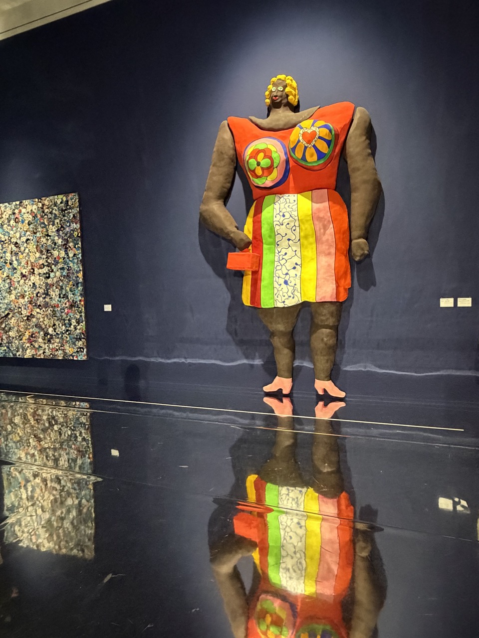 Und „Niki. Kusama. Murakami: Love you for Infinity“ ist wirklich keine stille Reihe von Bildern an weißen Museumswänden: Die Ausstellung arbeitet mit Kontrasten, visueller Überforderung und dem Gefühl, dass die Kunst hier nicht nur betrachtet, sondern erlebt werden will. Ich mag Ausstellungen, in denen man nicht geschniegelt und gestriegelt durchschreitet, sondern in denen man stehen bleibt, lacht, sich irritiert und nochmal zurückläuft. Passenderweise hatte ich meinen knallbunten Adidas-Jogginganzug, den ich sonst nur zu Hause auf der Couch trage, selbstbewusst angelassen und war somit fast genauso farbenfreudig wie die ausgestellten Kunstwerke.