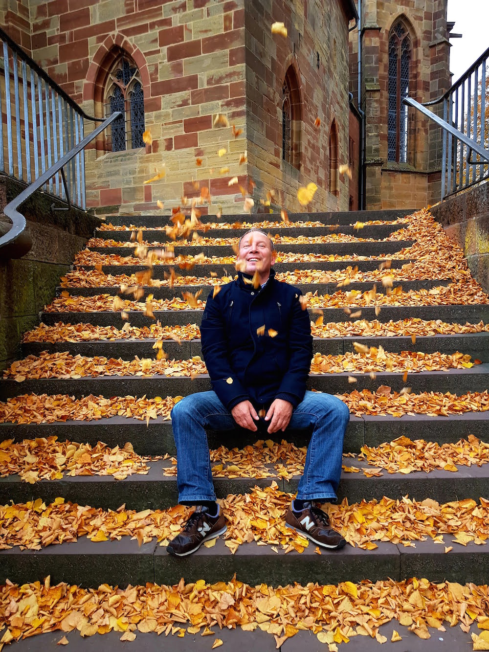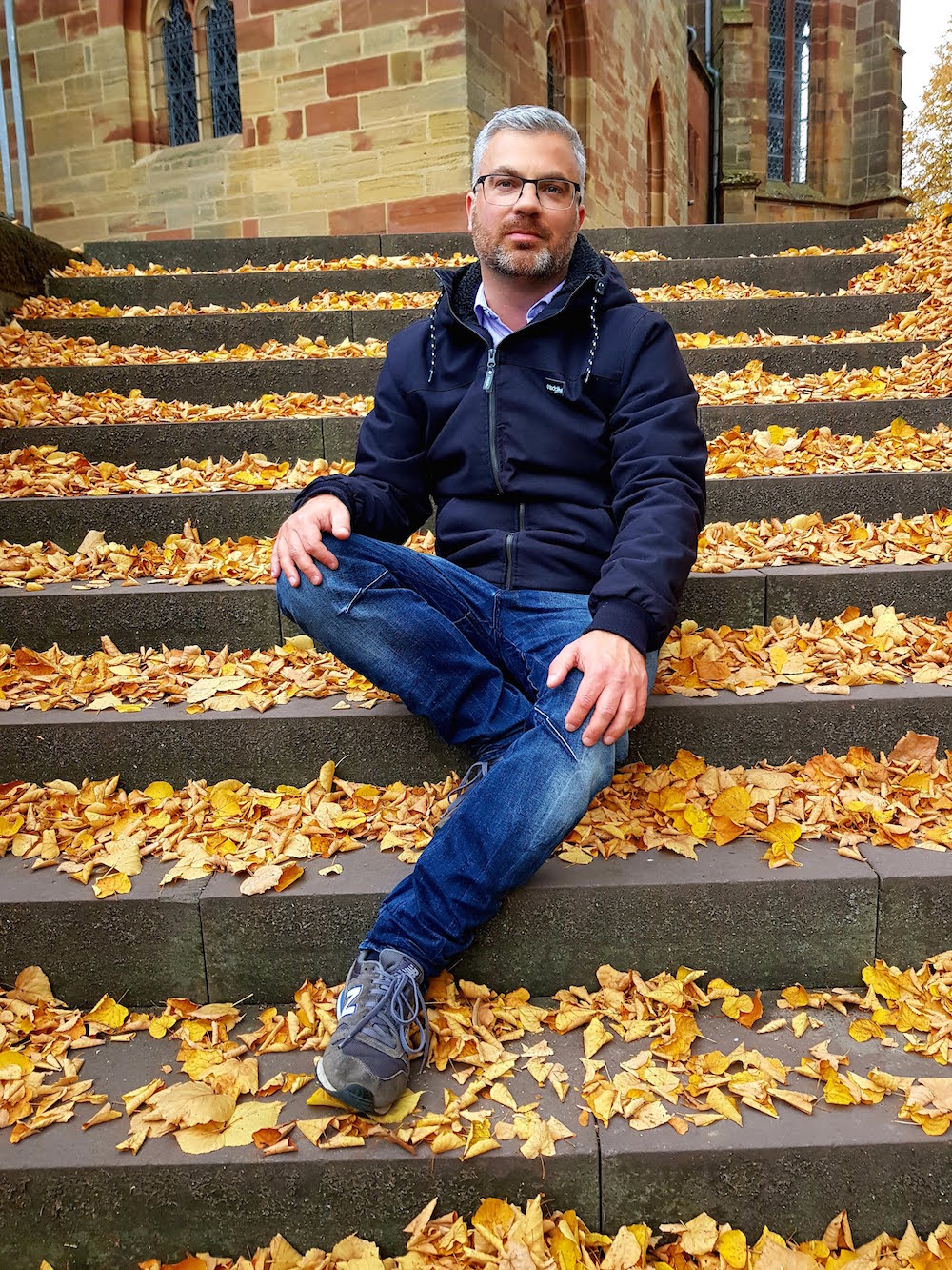 Ein wenig unterhalb der Kirche, direkt neben einer mit romantischem Herbstlaub bedeckten Treppe, finde ich ein malerisches, fast vollständig zugewachsenes Gebäude. Einer Infotafel entnehme ich, dass es sich dabei um die Pfarrscheune handelt. Welch ein verwunschener Anblick – und natürlich ein fantastisches Fotomotiv!